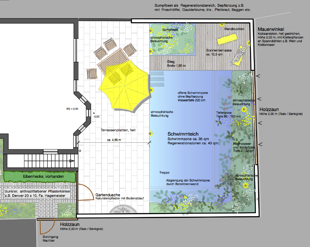 Neugestaltung Hausgarten mit Anlage eines Schwimmteichs Famile Gliges, Neuss- Reuschenberg, 2012